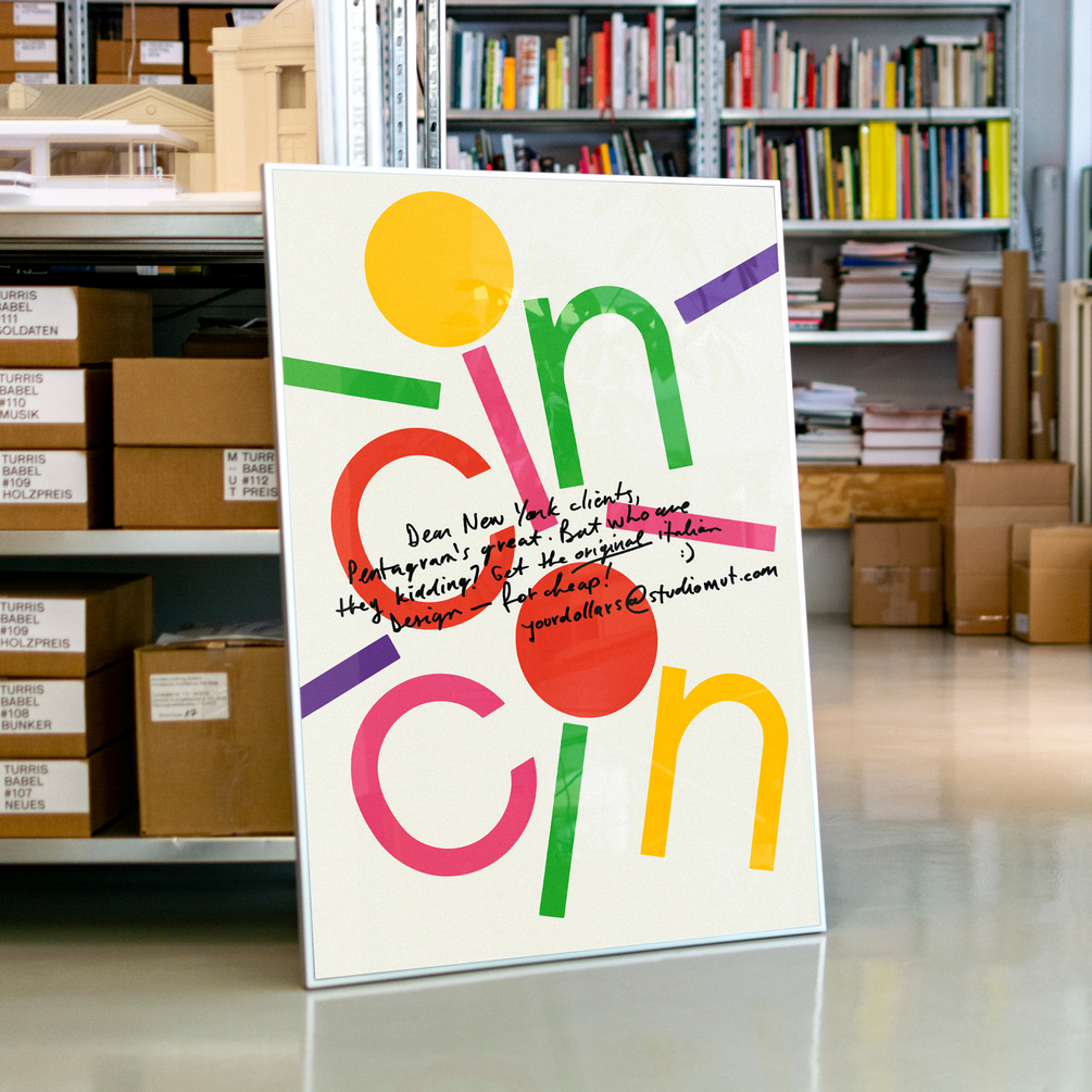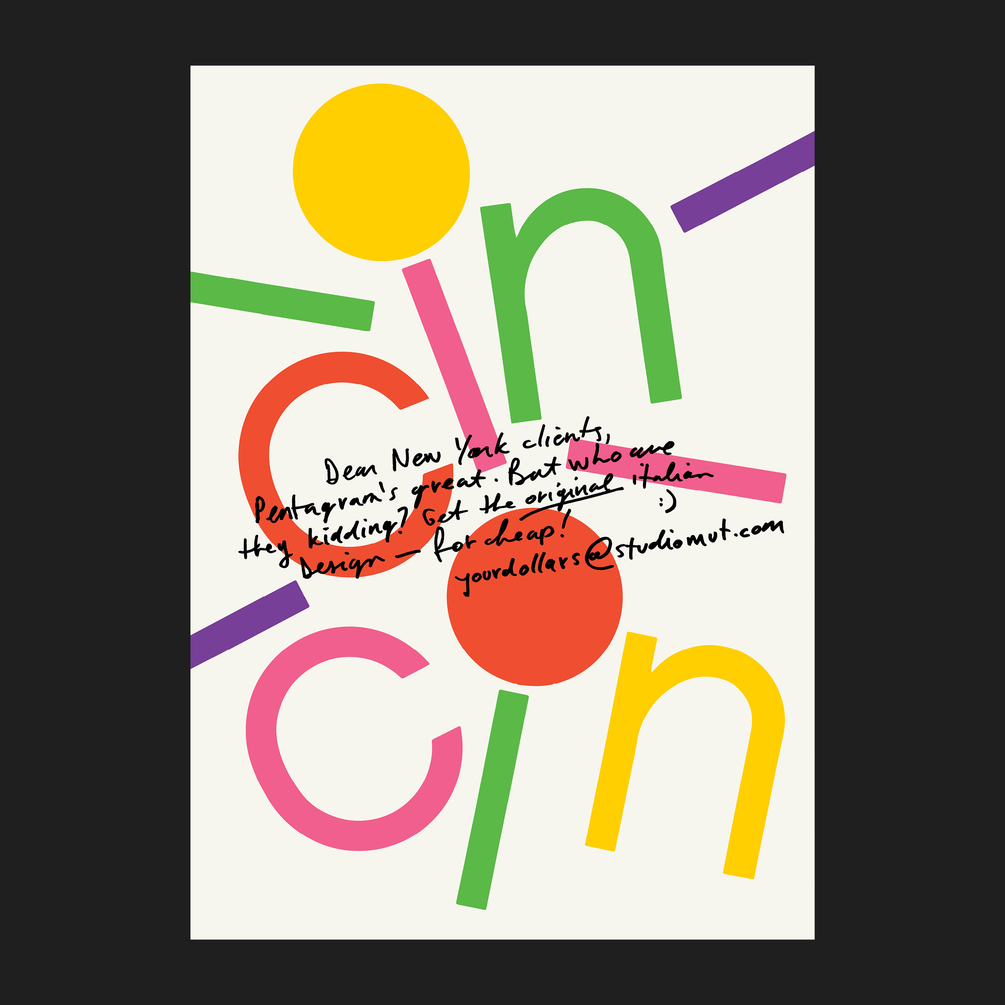 Studio Mut goes to NYC with an homage to Max Huber… and a cheeky joke! Poster designed for Made In Italy NYC, an exclusive 2-day event organised by Pentagram celebrating the rich heritage of post-war Italian graphic design and its strong, enduring relationship with the US.